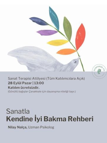 “Sanatla Kendine İyi Bakma Rehberi” atölyesinde, iyileştirici ifadenin kapılarını birlikte aralarken aynı zamanda Çanakkale yangınından etkilenen doğa için de bir iyileştirme niyeti taşıyoruz.